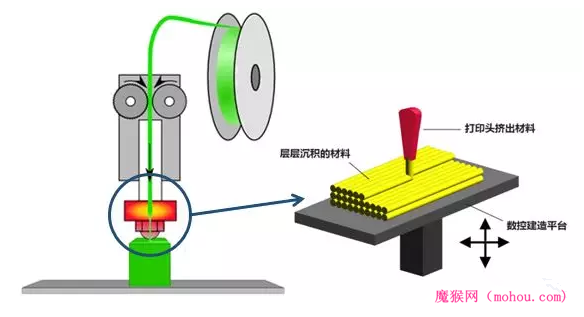 目前陶瓷3D打印成型技術主要可以分為噴墨打印技術(IJP)、熔融沉淀技術(FDM)、分層實體制造技術(LOM)、選擇性激光燒結技術(SLS) 和立體光固化技術(SLA)等。 使用這些技術打印得到的陶瓷坯體經過高溫脫脂和燒結后便可得到陶瓷部件。根據成型方法和使用原料的不同,每種打印技術都有自己的優缺點,發展程度也有差距。 1熔融沉積造型(FDM) 熔化沉積造型法由美國學者Scott Crump于1988年研制成功,其以熱塑性絲狀為原料,絲通過可在X-Y方向上移動的液化器熔化后噴頭噴出,根據所涉及部件的每一層形狀,逐條線、逐個層的堆積出部件。FDM使用的原材料有聚丙烯、丙烯腈-丁二烯鑄造蠟質等。