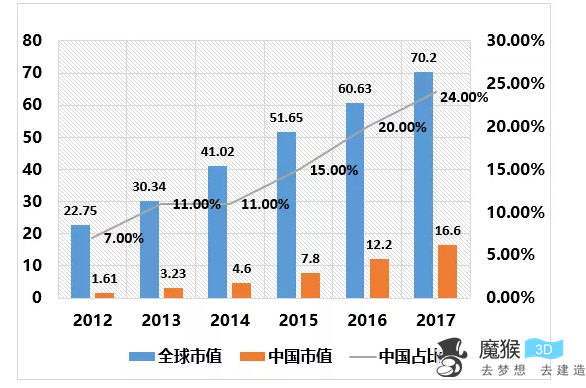 據知名市場研究公司MARKETS ANDMARKETS(M&M)發布的一份調查報告顯示,3D打印陶瓷市場的全球規模有望從2016年的2780萬美金增長至2021年的1.315億美金,期間的復合年增長率(CAGR)將高達29.6%。